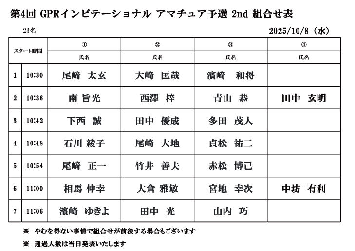 第4回GPR INVITATIONALアマチュア予選会2nd 組合せ